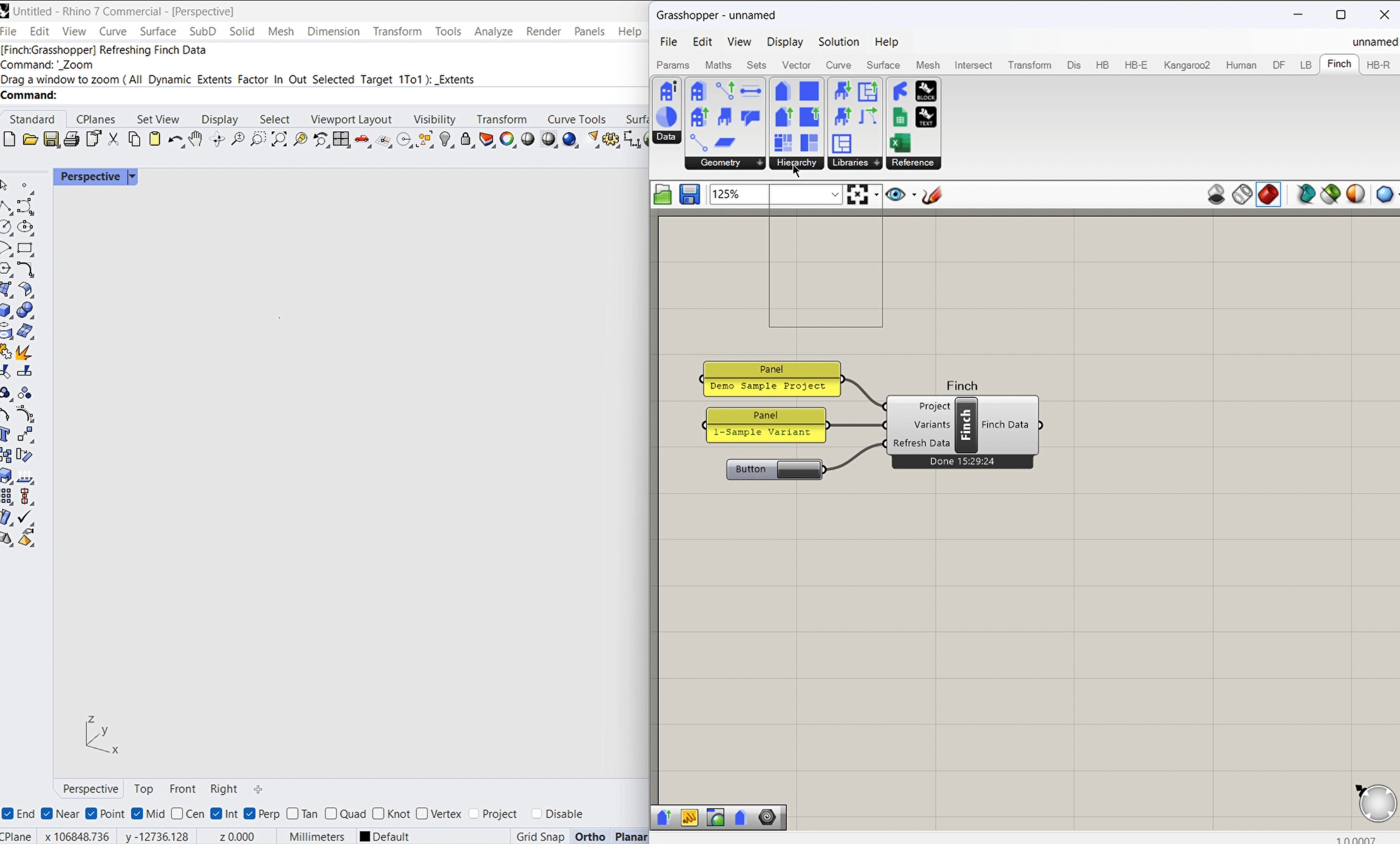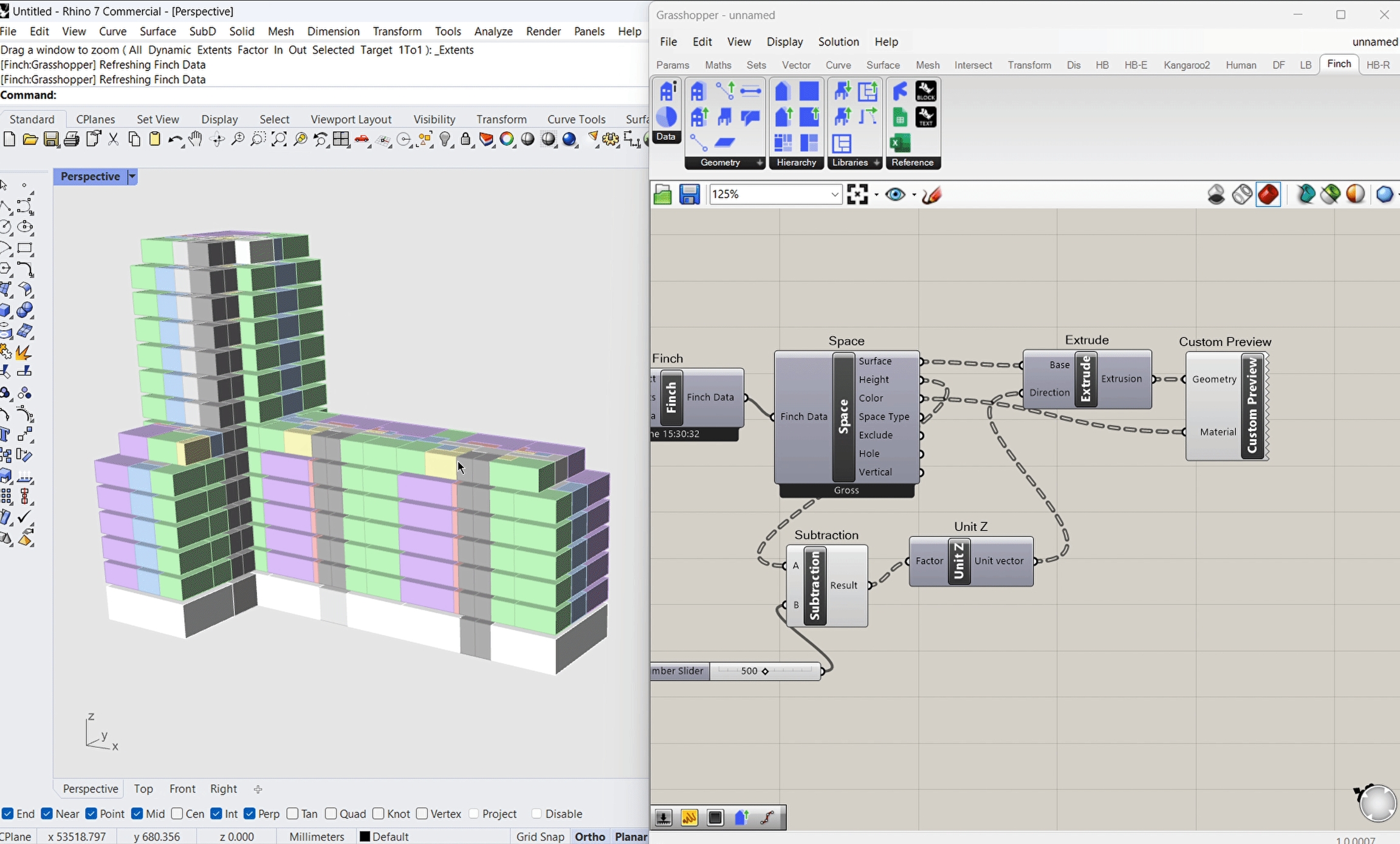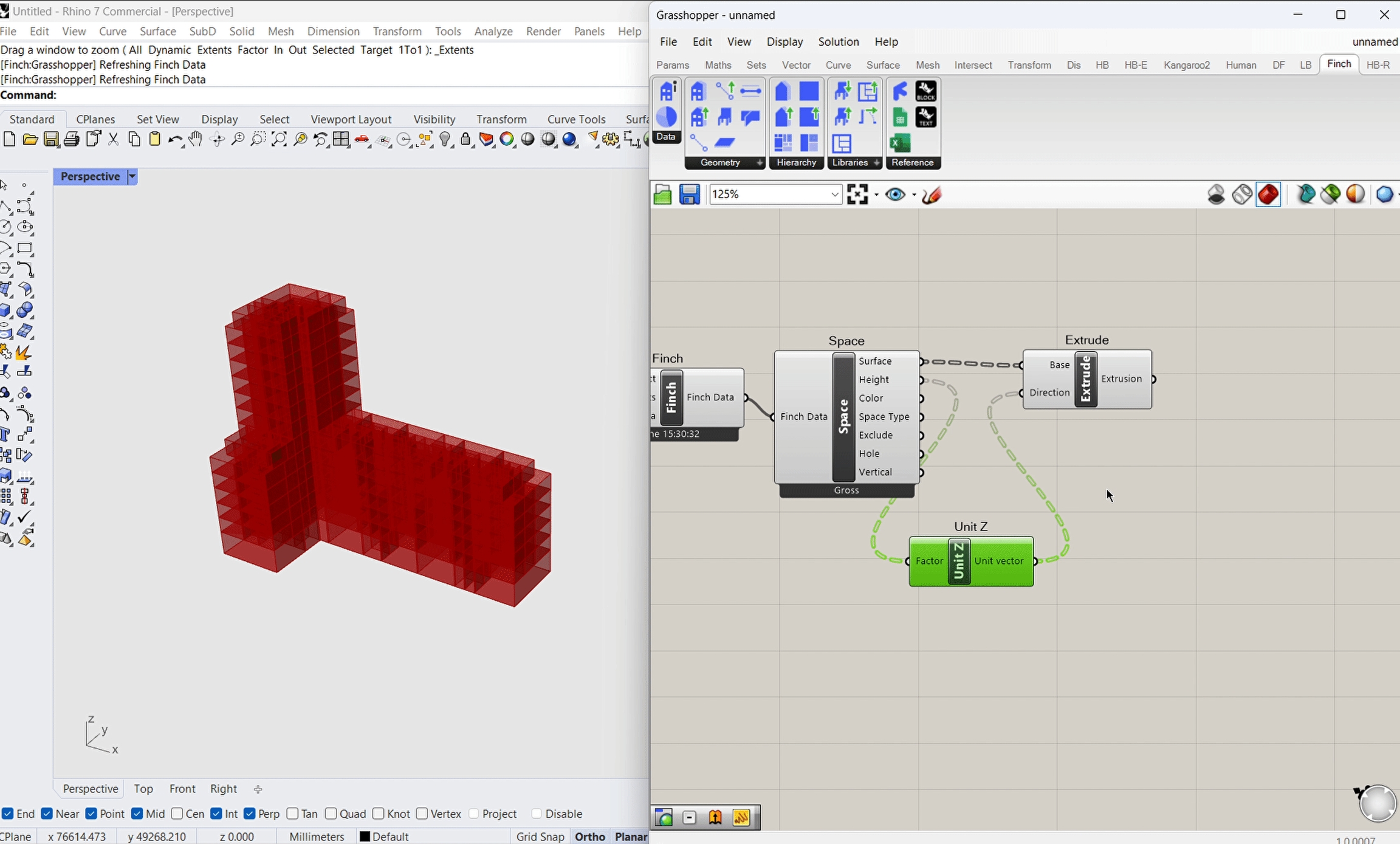 The following gifs show an example of how you can use the Finch data to create detailed models in Grasshopper.