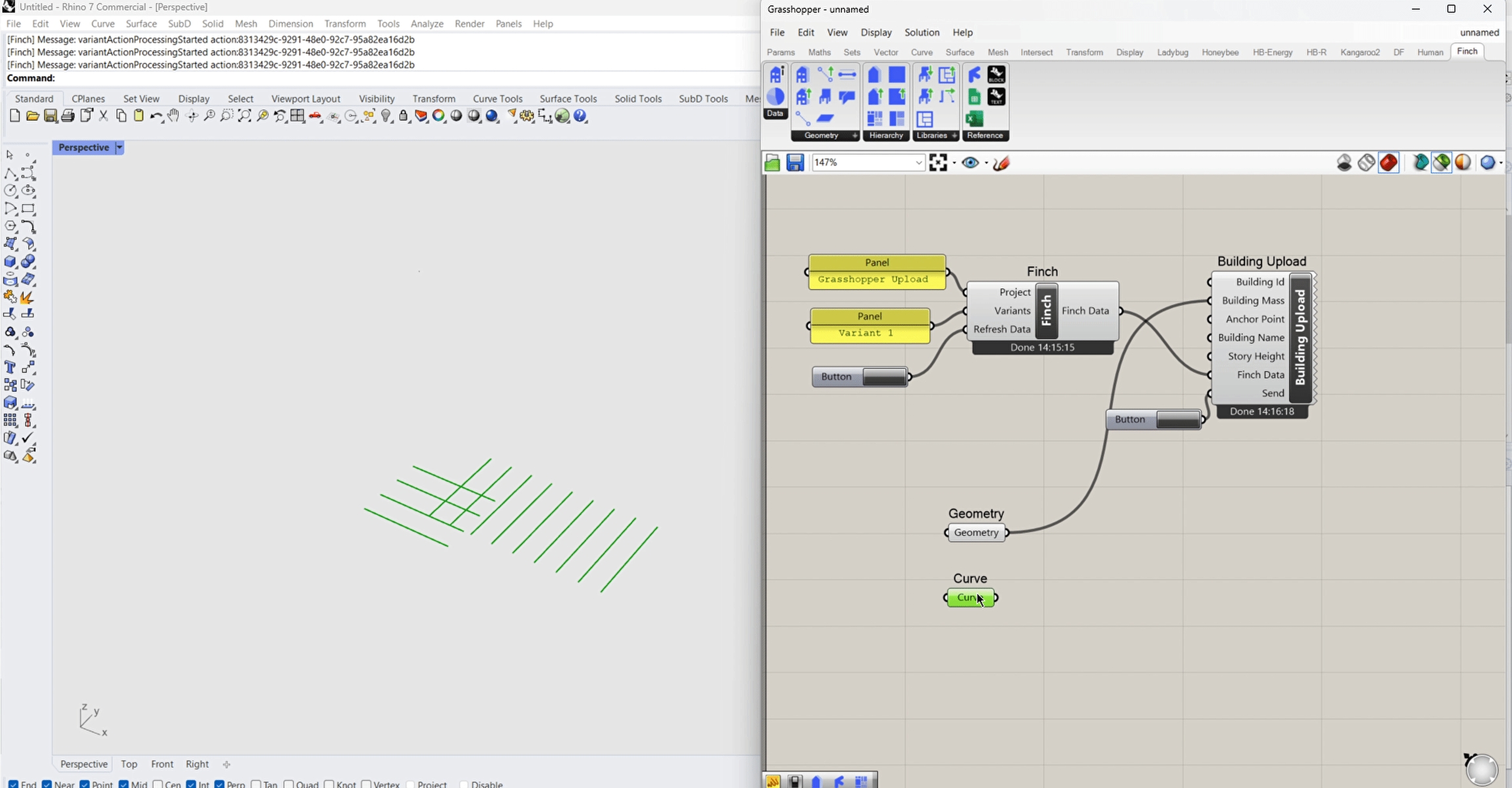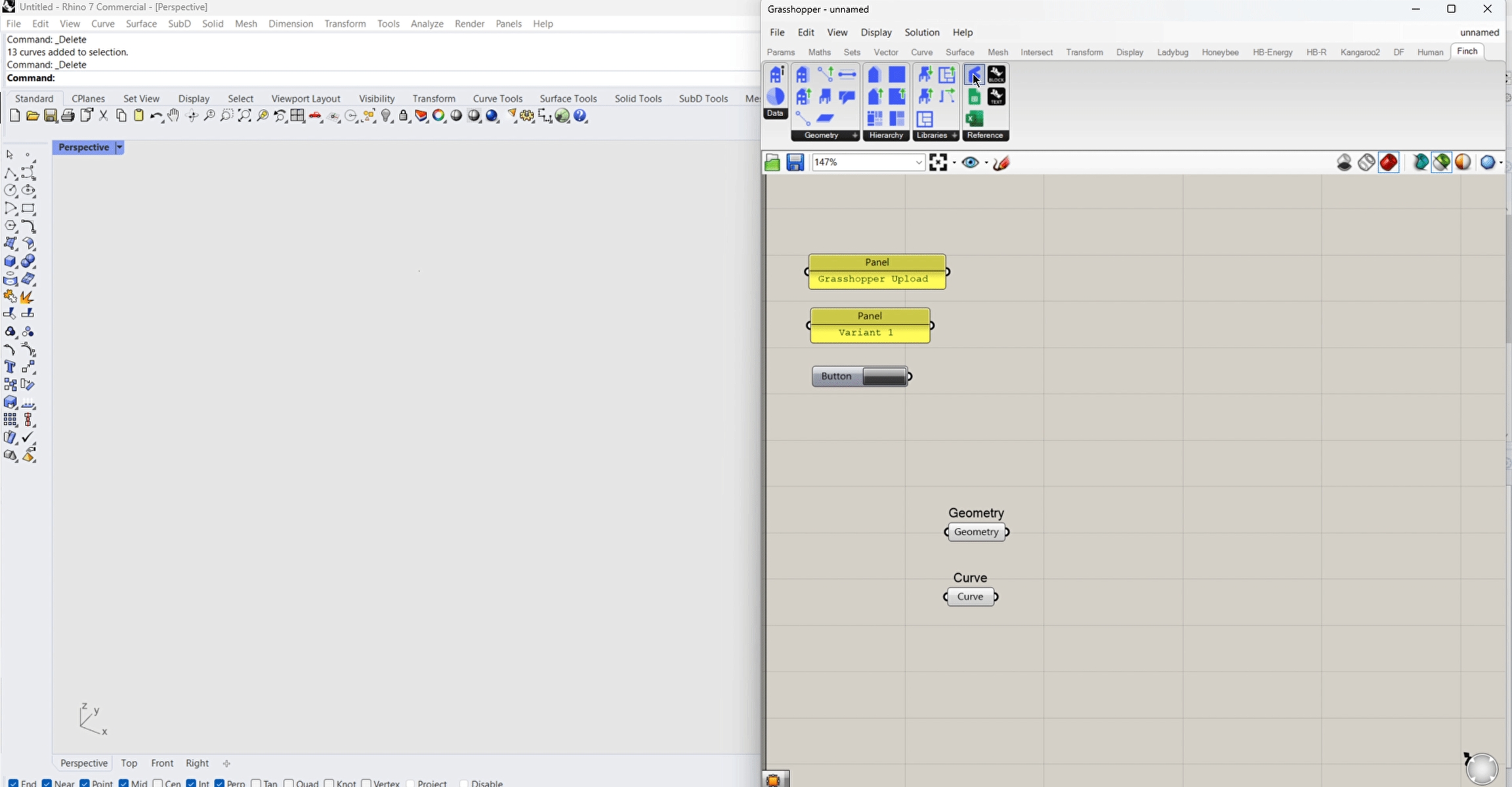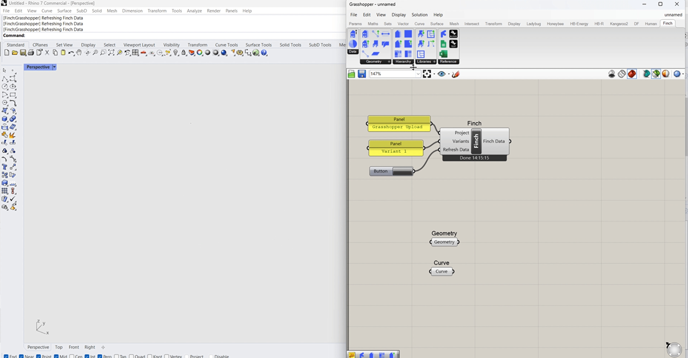Finchcomponent onto the canvas and connect the panels and button into their respective inputs.