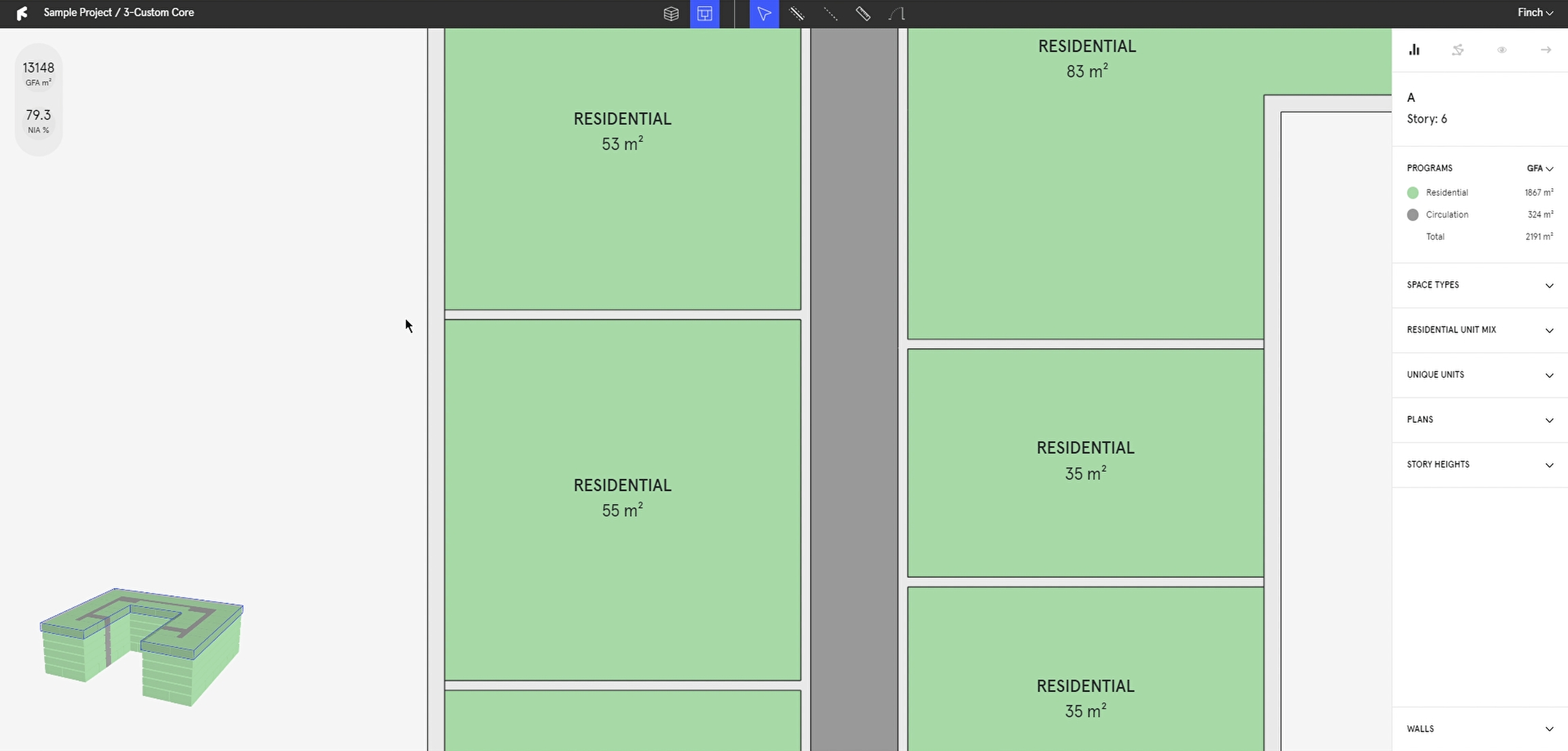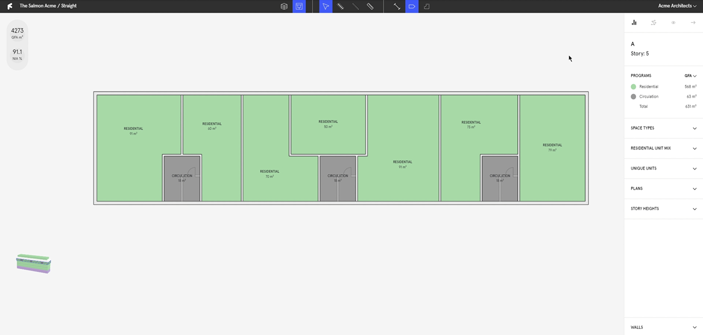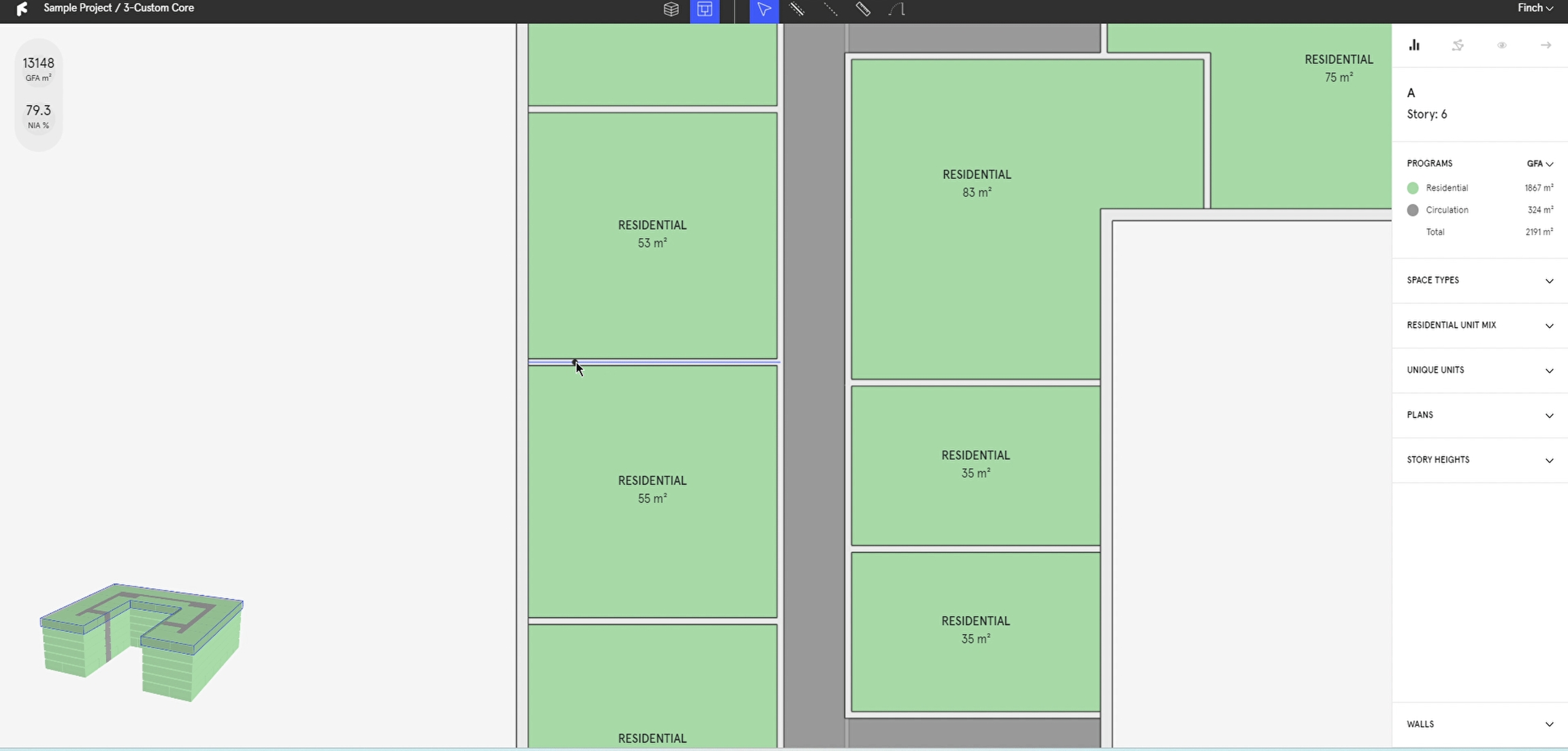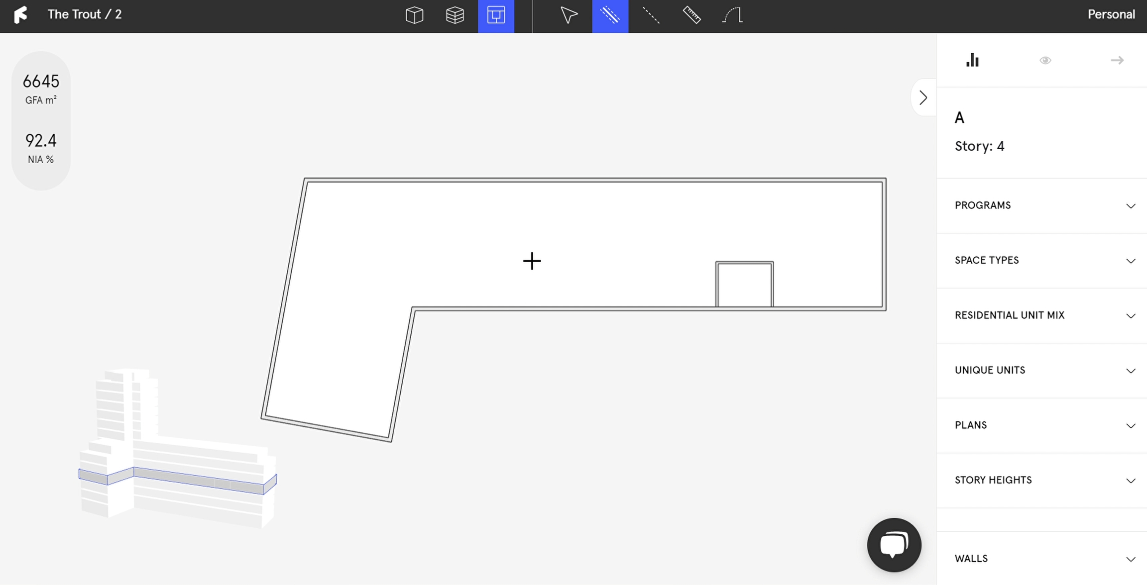 Select the wall tool (
