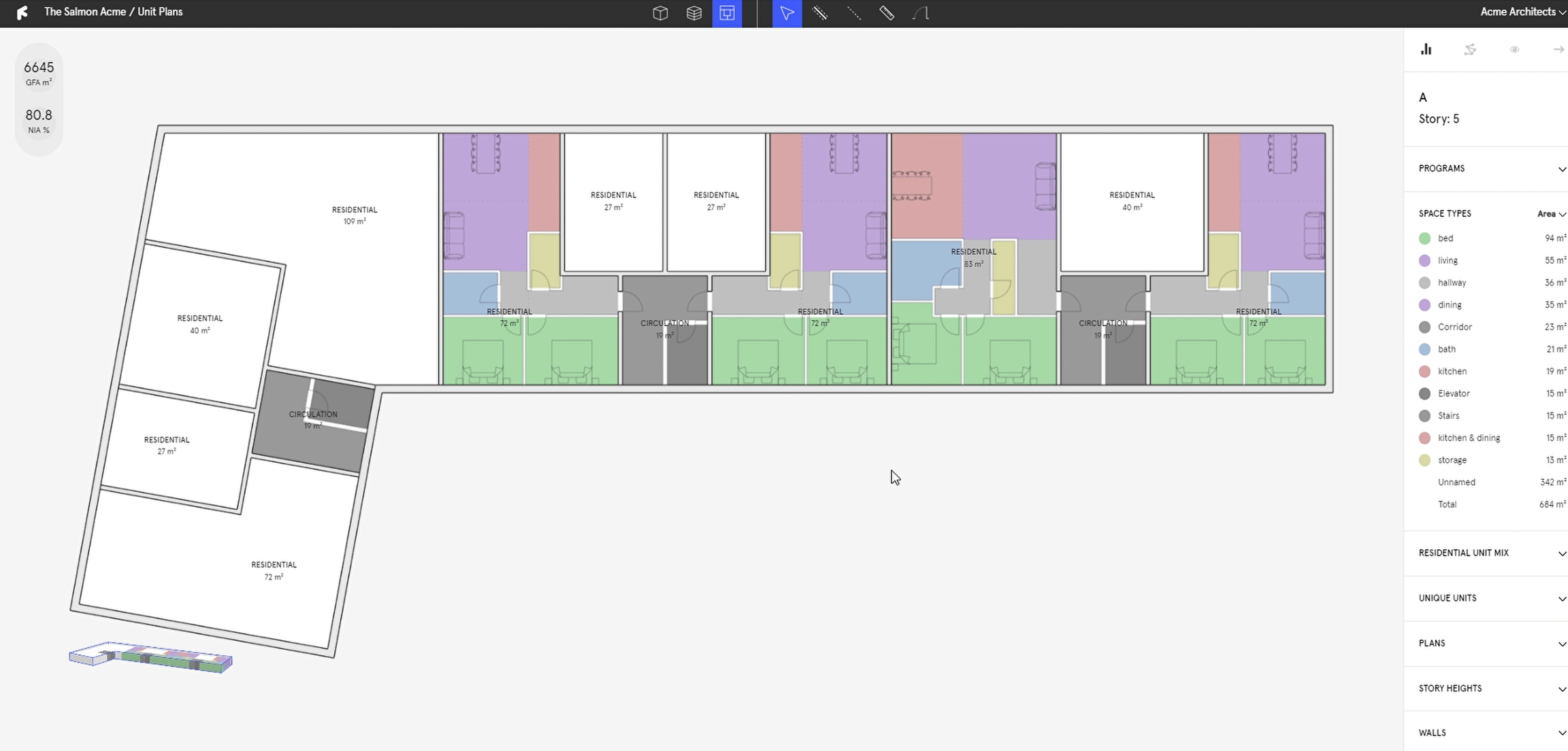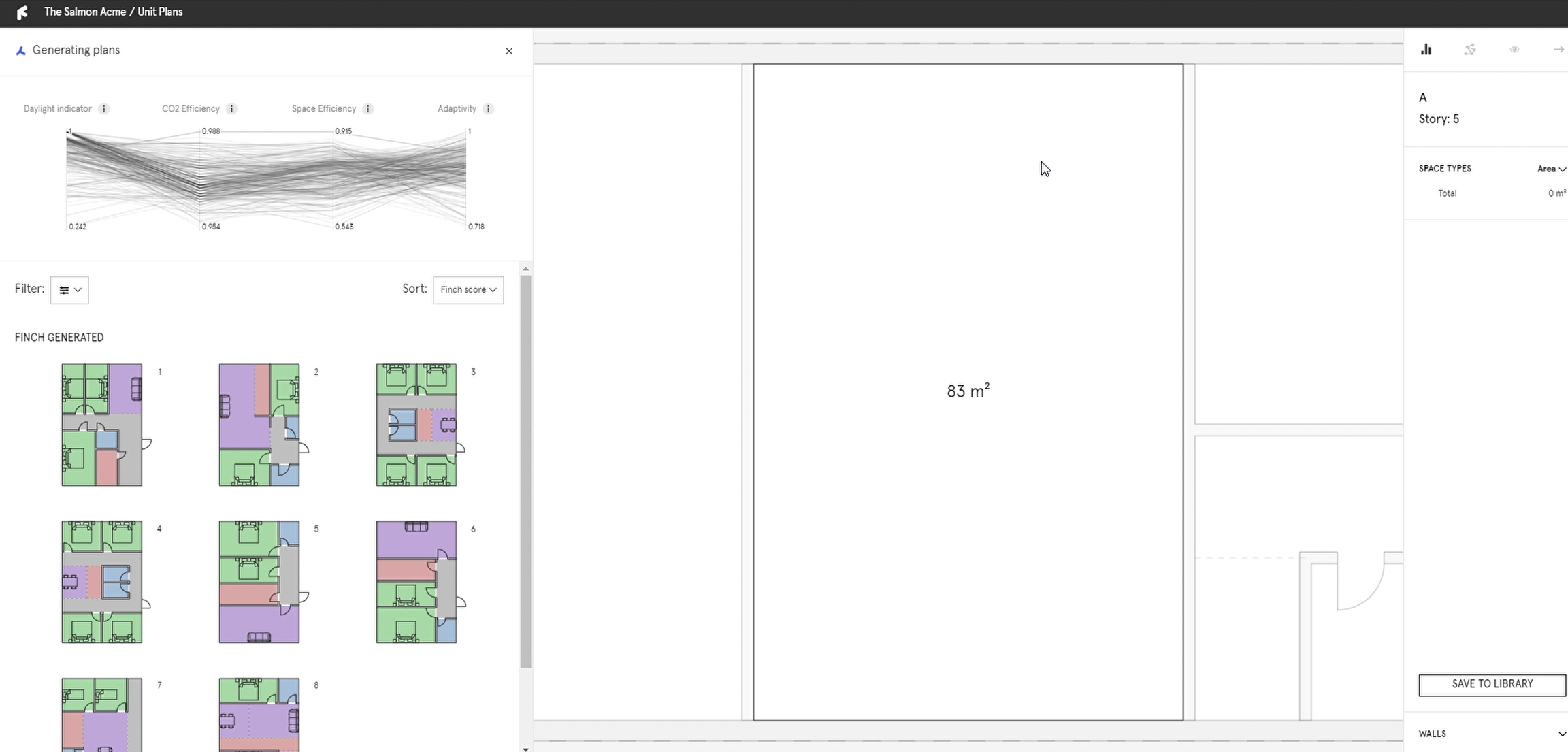 When generating floor plans for an apartment shape, plans in your adaptive plan library that are similar will be adjusted to an extent by the finch algorithms to fit into the new apartment. These results are compiled and grouped together.